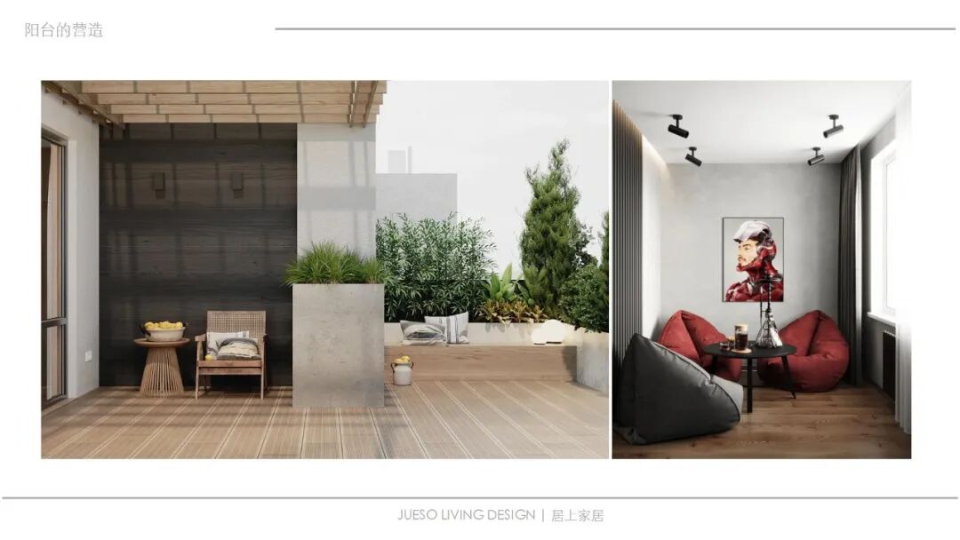 象龜背竹、天堂鳥、散尾葵這些植物也蠻適合的,小型的多肉盆栽、松樹盆栽也是不錯的選擇,那具體也是要根據(jù)空間的氛圍來挑選綠植,陽臺地上鋪一張小的塊毯,也會覺得生活儀式感多了一些,那這些都屬于軟裝設(shè)計師我們未來工作服務(wù)的內(nèi)容。